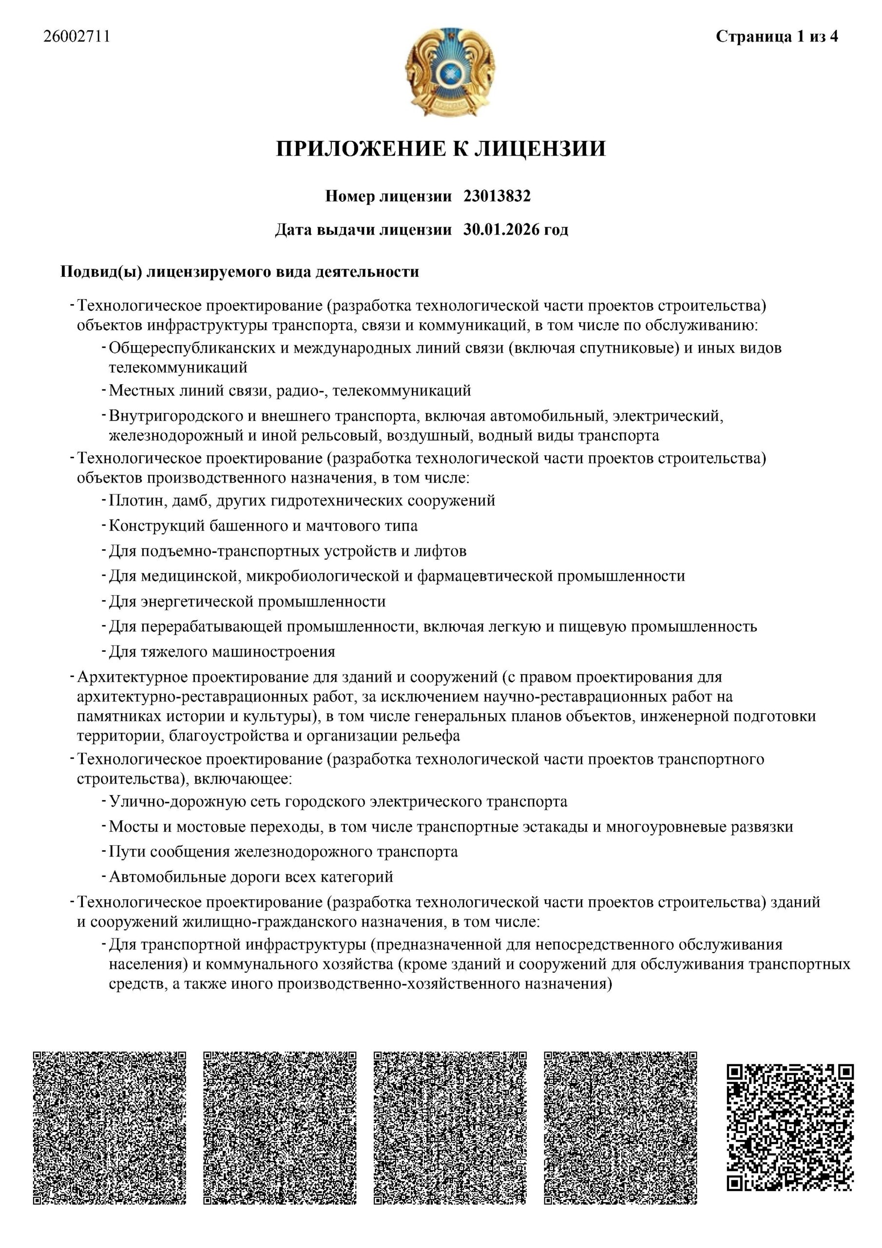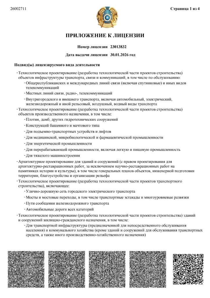 I категории по направлениям необходимым для проектирования в Республике Казахстан и может в полном объеме выполнять функции генерального проектировщика.
