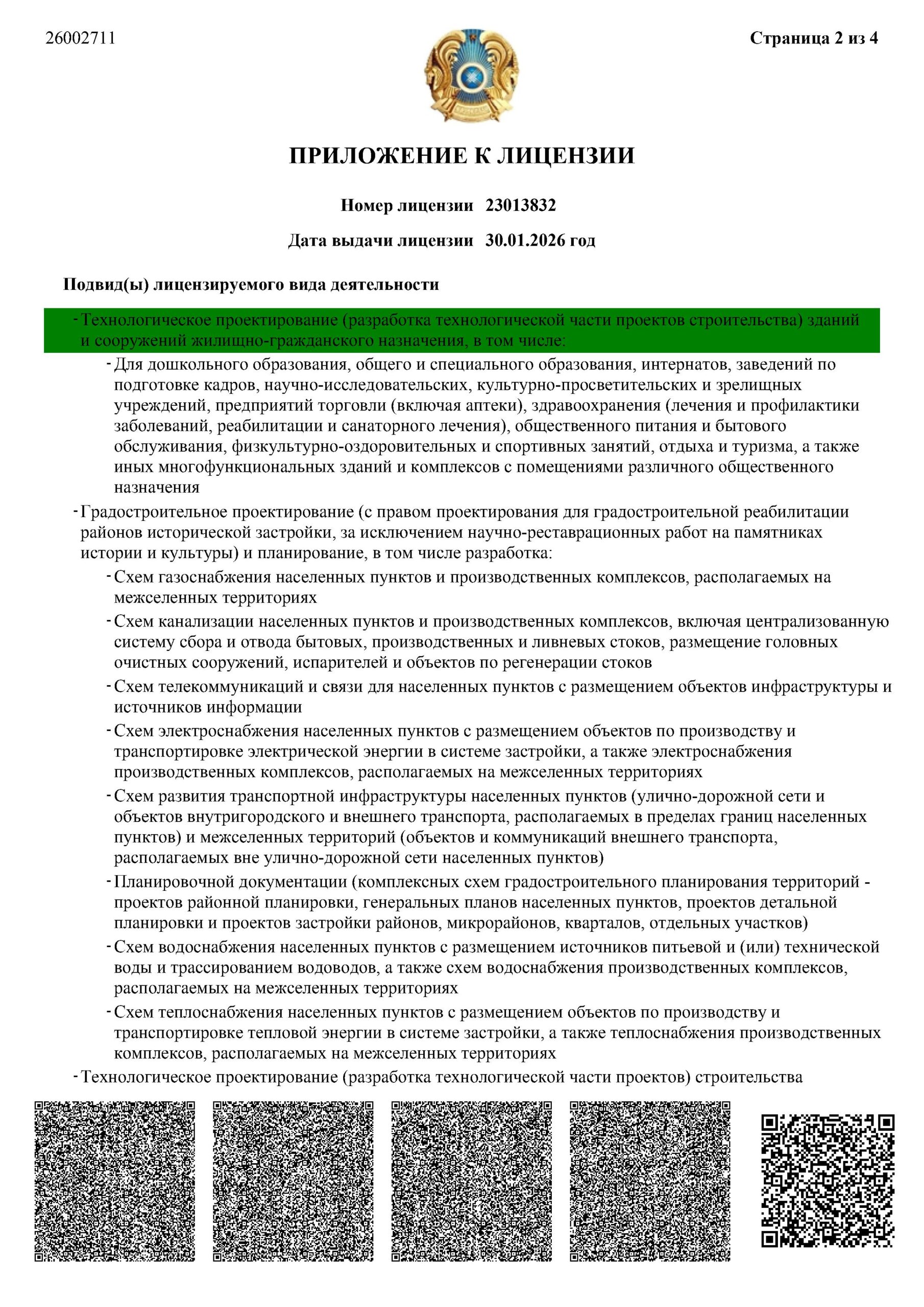 Выдана: 30.01.2026 года № 23013832 Вид лицензии: Проектная деятельность