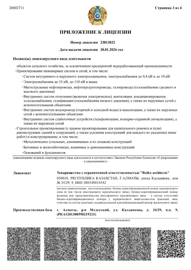 Юридическое наименование ТОО «BOIKO architects» Компания имеет лицензию